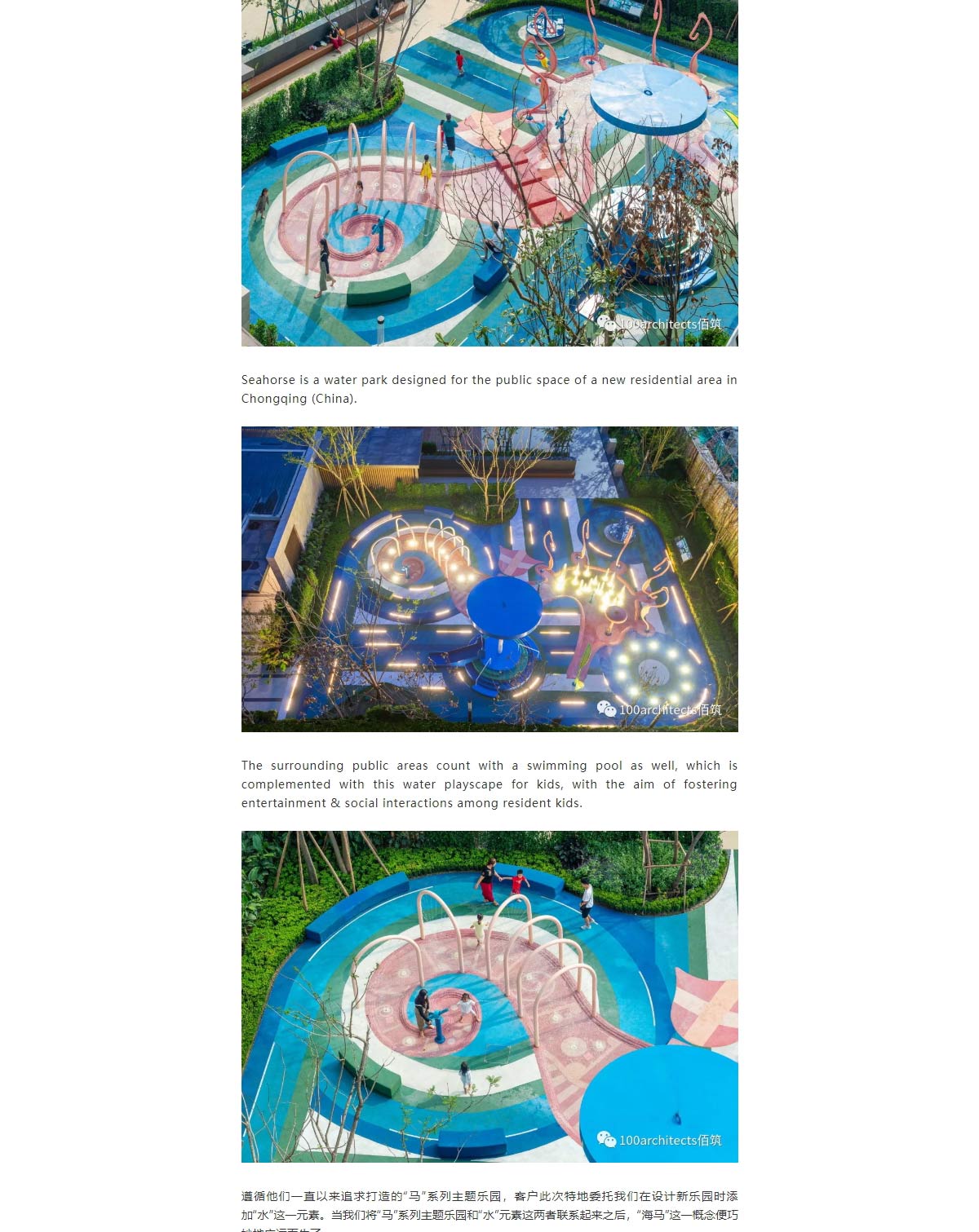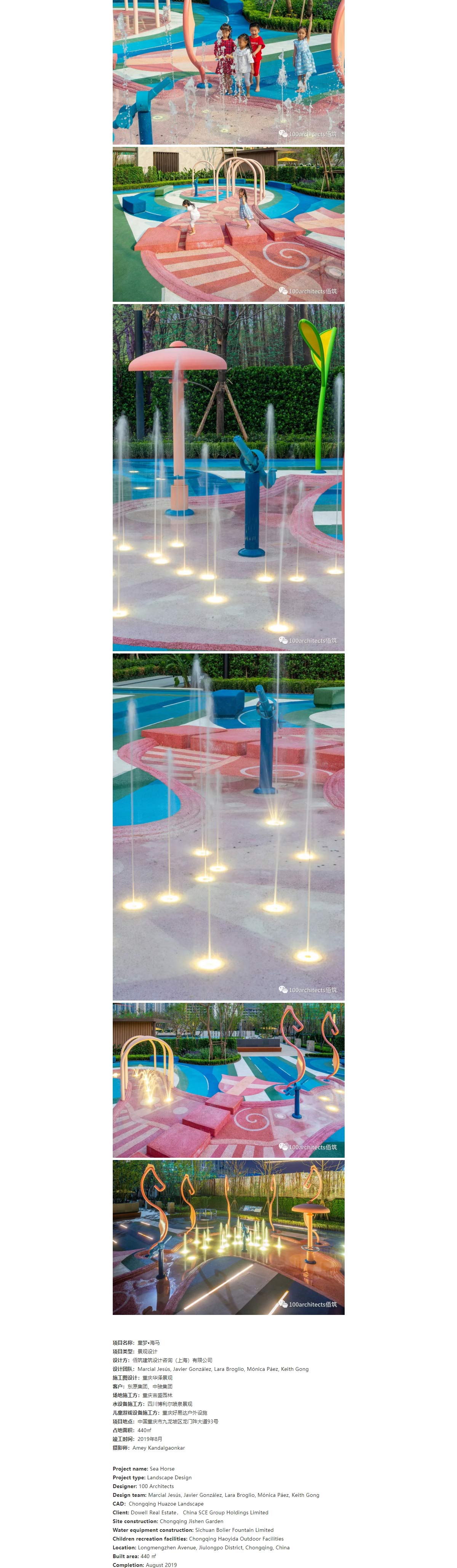 童夢(mèng)•海馬是我們最近為重慶一新住宅區(qū)公共區(qū)域設(shè)計(jì)打造的水上樂(lè)園。周圍公共區(qū)域?yàn)榫用衽溆杏斡境,加以這片為兒童打造的水上樂(lè)園,從而促進(jìn)了社區(qū)兒童之間的娛樂(lè)及社交互動(dòng)。